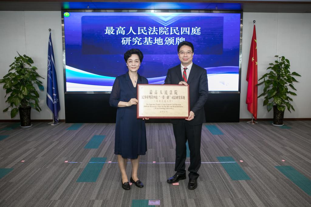 启动活动结束后,最高人民法院陶凯元副院长分别为15家研究基地颁牌。为深入学习贯彻习近平法治思想,全面推进依法治国,统筹推进国内法治和涉外法治,充分发挥高等院校、科研机构的研究优势,促进法学教育与司法实践的深度融合,实现优势互补、资源共享、发展共赢,最高人民法院民四庭在全国高校和科研机构中遴选出15家院校和机构建立了相应的研究基地。乐动网页版作为最高人民法院民四庭全国15家研究基地之一,被授予最高人民法院民四庭“一带一路”司法研究基地。
