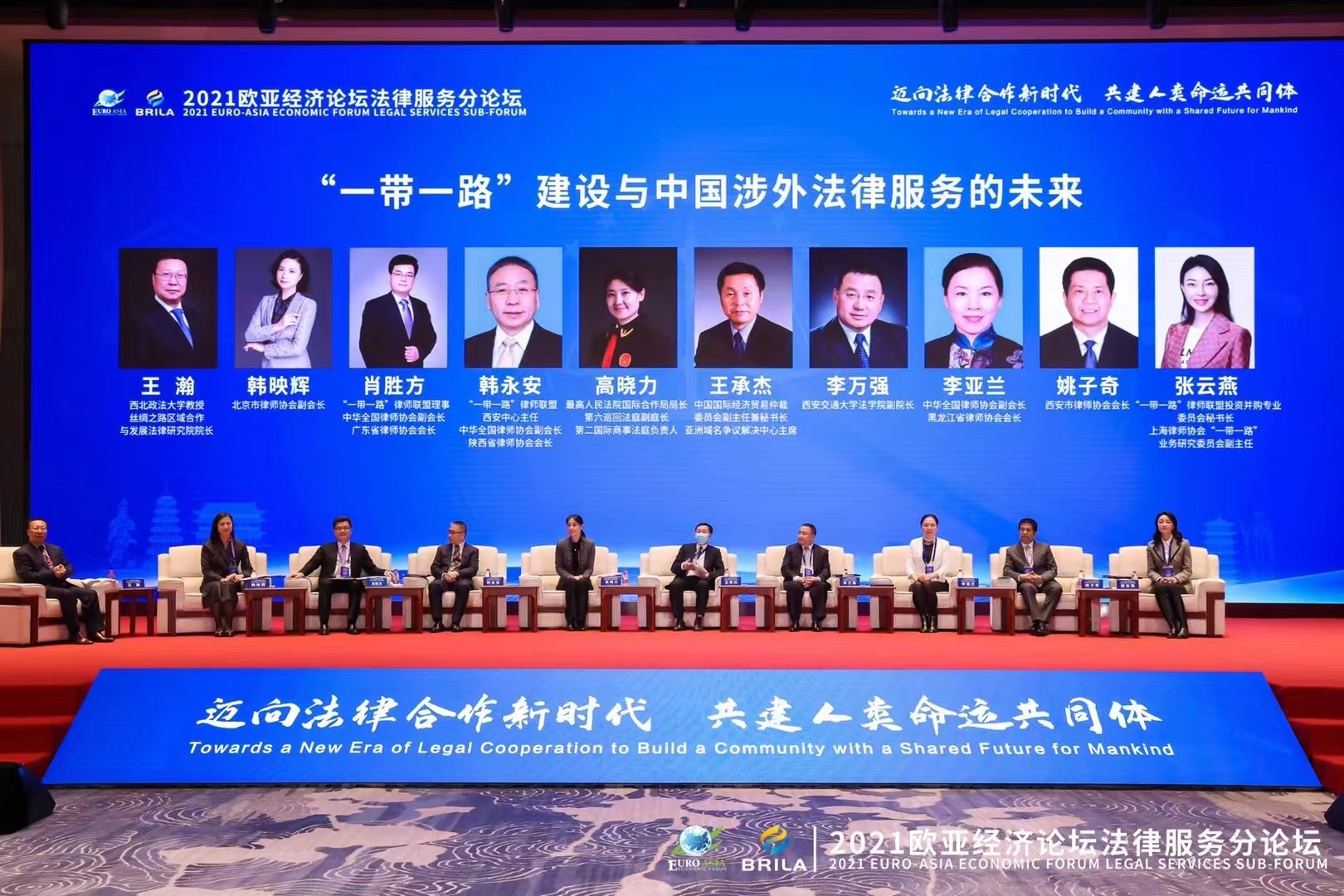 10月18日下午,2021欧亚经济论坛法律服务分论坛在西安举办,“一带一路”律师联盟秘书长康煜先生、最高人民法院国际合作局局长高晓力法官、中国国际经济贸易仲裁委员会副主任王承杰先生、中国国际贸易促进委员会法律事务部部长刘超先生、上海政法学院校长刘晓红教授等众多知名法律专家、学者和法律业界代表云集古城,围绕“迈向法律合作新时代,共建人类命运共同体”主题,深入交流,凝聚共识,探讨国际法律服务新路径,助力“一带一路”建设。