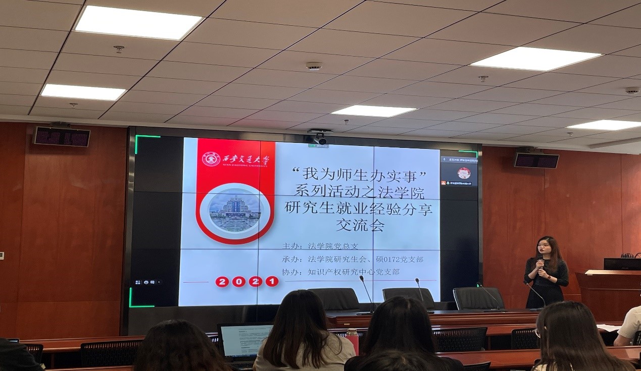 为了帮助同学们进一步了解法学专业就业形势,拓宽就业信息渠道,解决求职困惑,法学院于2021年5月26日下午,在涵英楼3004举办了研究生就业经验分享交流会。