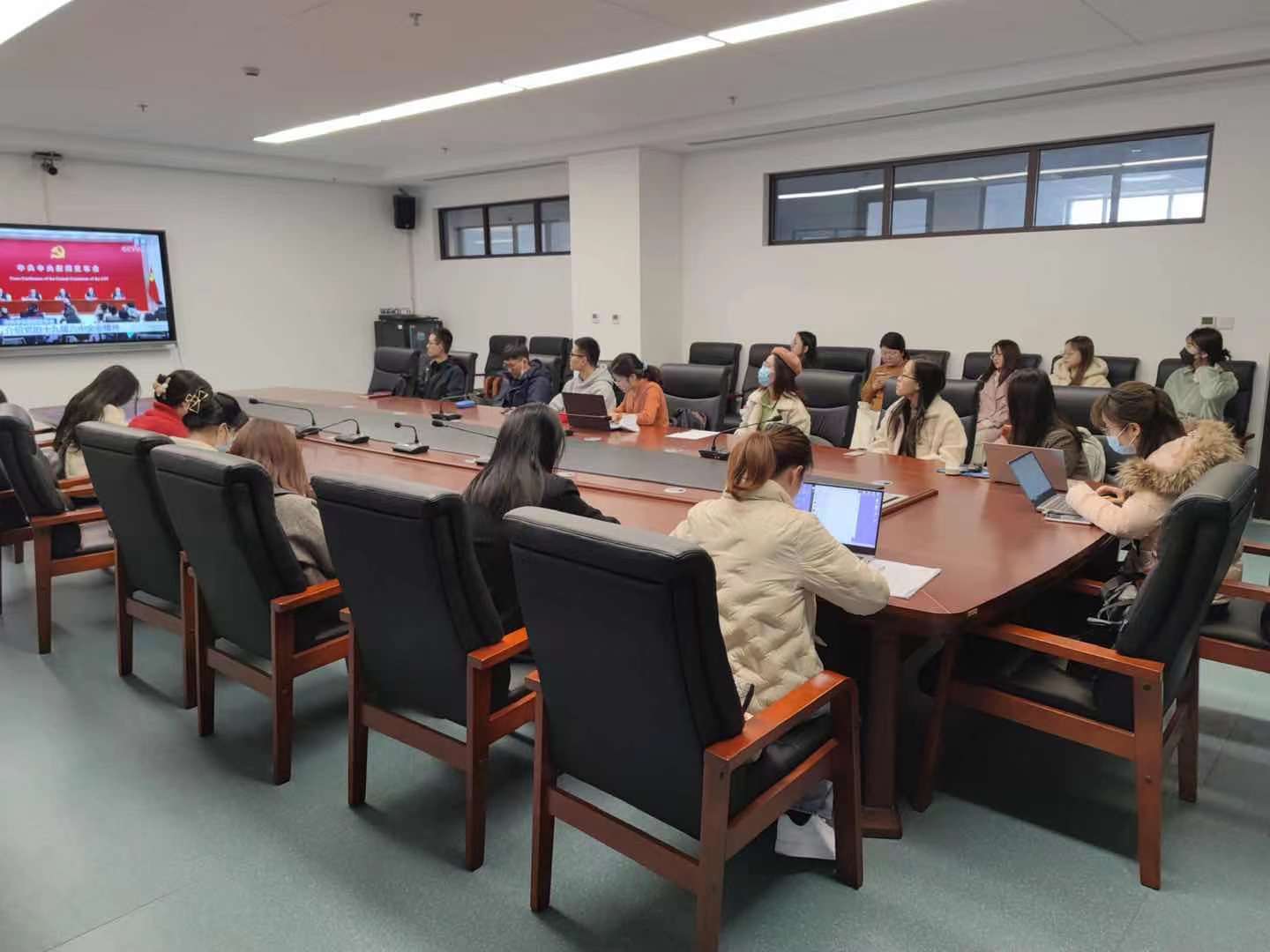 2021年11月8日至11日党的十九届六中全会在北京召开,11月12日上午法学院组织党员师生集中观看中共中央召开的十九届六中全会精神新闻发布会,深刻领悟全会的重大意义和深刻内涵。通过学习,法学院师生深受鼓舞和启发。