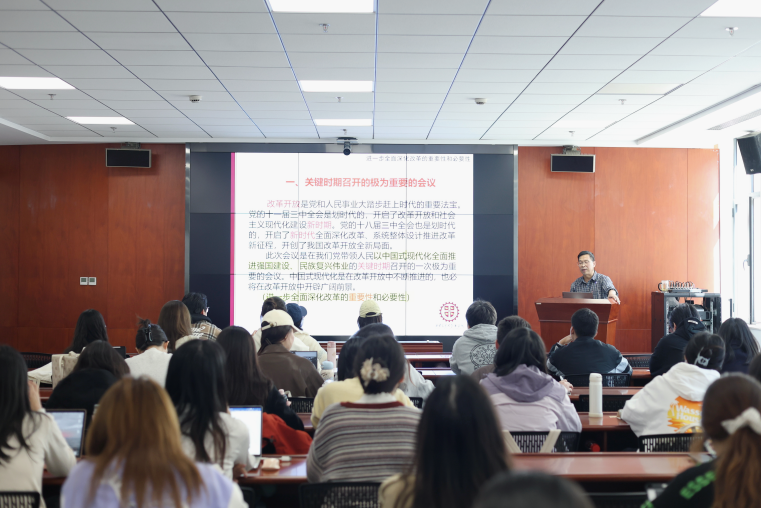 党课之初,王保民书记详细介绍了党的二十届三中全会召开的重要意义,指出二十届三中全会是在我们党带领人民以中国式现代化全面推进强国建设、民族复兴伟业的关键时期召开的一次极为重要的会议。王保民书记从党领导改革开放的成功经验出发,深入剖析了二十届三中全会议题的考虑与主题主线,让同学们对本次学习内容有了更加深刻的认识和理解。