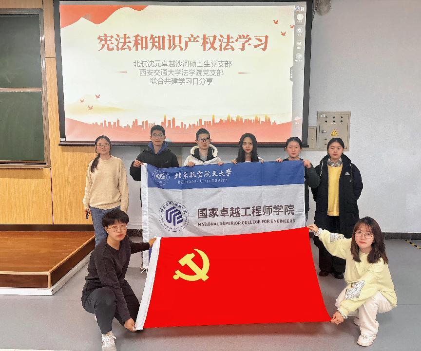 时值第十一个国家宪法日、第七个全国“宪法宣传周”,为全面贯彻落实党的二十届三中全会精神,深入学习贯彻习近平法治思想,硕4198班党支部积极响应学院党委号召,于12月7日下午,与北京航空航天大学沈元学院卓越沙河研究生支部通过线上线下相结合的形式,开展了主题党日共建活动。本次活动旨在通过两校党支部联建交流,弘扬宪法精神,维护宪法权威。