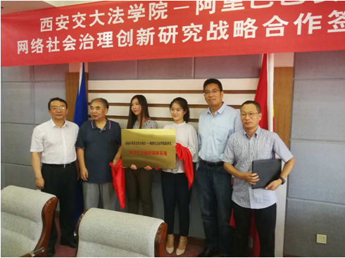 单文华院长与侯金刚总监代表双方签署了乐动网页版法学院与阿里巴巴安全部网络社会治理战略合作协议书。西安交大副校长席光、信息安全法律研究中心主任马民虎与阿里巴巴集团首席风险官刘振飞、安全部资深总监侯金刚,为“国家社科基金重大项目——网络社会治理创新研究阿里巴巴集团调研基地”揭牌。