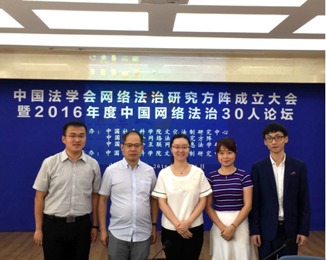 2016年8月28日,中国法学会网络法治研究方阵举行成立大会暨2016年度中国网络法治30人论坛。西安交大信息安全法律研究中心成功入选中国法学会“网络法治研究方阵”理事单位,成为全国五家理事单位之一。校社科处处长贾毅华、学院丁卫副院长受邀参加成立大会并致辞,信息安全法律研究中心副主任王玥副教授带领研究团队成员博士生马宁、党家玉参加论坛。开幕式由中国社科院文化法制研究中心主任、中国法学会互联网与信息法学会副会长周汉华主持。中国法学会研究部主任李仕春、中国法学会副会长李林、中国信息通信研究院政策与经济研究所所长鲁春丛、中南大学法学院院长陈云良、乐动网页版社科处处长贾毅华、华东政法大学刑事司法学院副院长王永全分别作为方阵理事单位代表致辞。