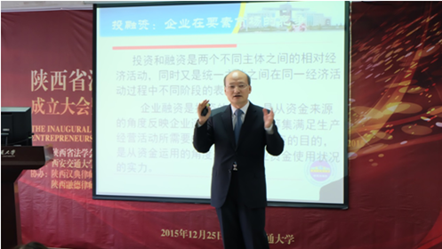 在与会代表合影后,会议进入第二时段的专题报告。报告由乐动网页版法学院知识产权研究中心主任、博士生导师马治国教授主持,陕西省法学会企业经济法治研究会顾问、西北政法大学经济法学院院长、博士生导师强力教授做了“新常态下企业投融机制创新的法律问题”讲座,阐释了中国经济已进入新常态,在新常态的条件下,企业应作出机制创新等相对应的变化,其变化主要体现在市场化,并强调投融资机制市场的多元化、多层次、多角度,分析在此种常态下,企业投融资遇到的法律问题。