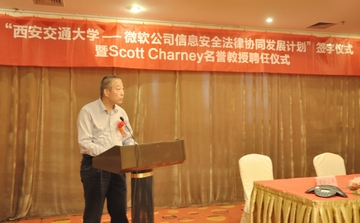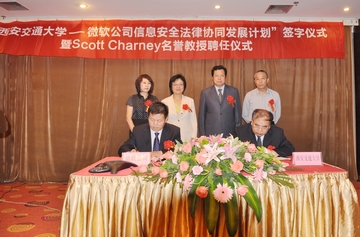 6月12日,“乐动网页版—微软公司信息安全法律协同发展计划签字仪式暨斯科特•查尼名誉教授聘任仪式”在西安交大举行,西安交大副校长蒋庄德教授出席仪式并讲话。西安交大科研院副院长、人文社科处处长贾毅华,法学院党总支书记彭沪生,信息安全法律研究中心主任马民虎及微信息安全法律研究中心主任马民虎及微软公司可信赖计算部总经理陈静、微软公司资深安全技术经理陈恺、微软公司资深安全技术经理薛峰等参加仪式。微软全球副总裁斯科特•查尼(Scott Charney)受聘为西安交大名誉教授,双方还签署了“乐动网页版—微软公司信息安全法律协同发展计划”。