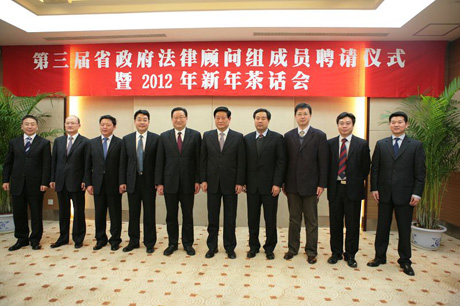 1月15日,陕西省第三届省政府法律顾问组成员聘请仪式暨2012年新年茶话会在西安召开,乐动网页版法学院院长单文华教授被聘请为顾问组7名成员之一。