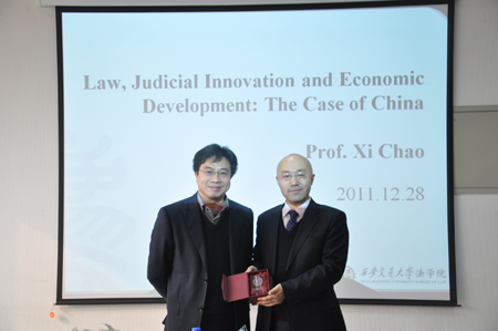 2011年12月26日至28日,香港中文大学法学院习超副教授访问乐动网页版法学院,并就“法与经济发展”问题为法学院学子作学术报告。