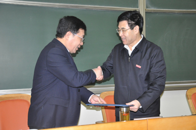 在热烈的掌声中,宋晓平副校长向安院长颁发了聘书,安东院长受聘为我校“兼职教授”和“法学院发展咨询委员会副主任委员”,宋晓平副校长为安院长佩戴了乐动网页版校徽。