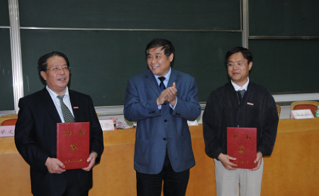 6月9日晚,SRIICL揭牌与张玉卿教授、杨国华教授授聘仪式首先隆重举行。仪式由单文华院长主持。王建华书记与两位教授共同为SRIICL揭牌,并分别为张玉卿教授、杨国华教授颁发了兼职教授聘书,佩戴了校徽。随后,张、杨二位教授向交大赠送了他们最近出版的新书。仪式结束后,王建华书记发表了重要讲话。他向两位领导和教授的到来表示感谢,向法学院和SRIICL表示祝贺。他回顾了近年来我校法学学科的发展历程,指出这次活动有着重要意义,标志着法学院的发展进入了一个新的阶段。他表示学校将一如既往地重视和支持法学院的各项工作特别是学科和队伍建设工作。最后,他寄语法学学子抓住机遇,刻苦学习,早日成才,为国家为世界作出重要贡献。随后,杨国华和张玉卿教授也发表了热情洋溢的讲话,寄望交大法学院不仅在西北,更要在全国、全世界法学界扮演重要角色。