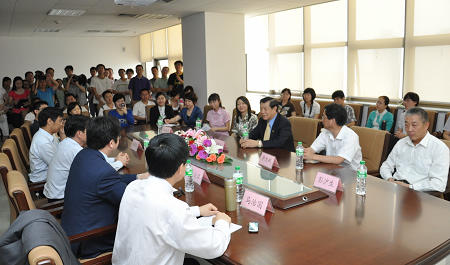 上午9时,闫剑群副校长在医学校区主持仪式,为李昌钰博士颁发了我校博士生导师的聘书。出席仪式的有医学院副书记、副院长贺浪冲教授。李昌钰博士的博士生孟霞向李博士敬献了鲜花。