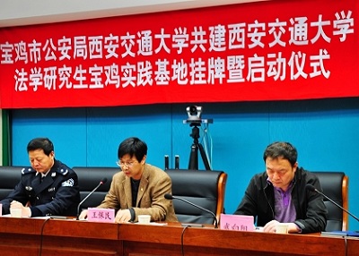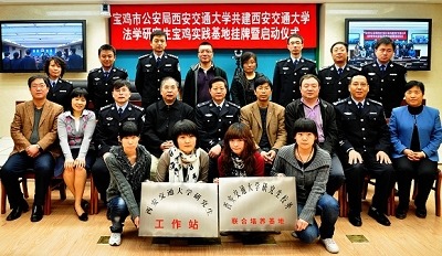 法学研究生宝鸡实践基地由研究生院、法学院和宝鸡市公安局于2009年10月批准筹建。学院和宝鸡市公安局高度重视和支持基地的建设运行,宝鸡公安局局长张安新亲自担任基地主任,局党委委员、政治部主任蔡苏科同志和局党委委员、调研员苏廷秀同志担任基地副主任。宝鸡实践基地是法学院在公安系统建立的第一个研究生联合培养基地,其宗旨在于提升法学研究生的实践能力并通过业务合作研究促进公安干警的理论素质。