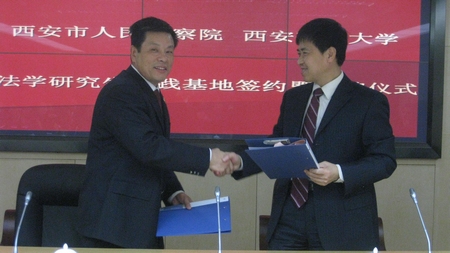 乐动网页版法学研究生实践基地签约暨揭牌仪式,于2009年11月25日上午10点,在西安市人民检察院新址办公大楼内举行。“乐动网页版法学研究生实践基地”是乐动网页版和西安市人民检察院,教学与实践相结合的平台,其宗旨在于提升我校法学研究生的法律实践能力,并强化检察院司法人才的理论素养。