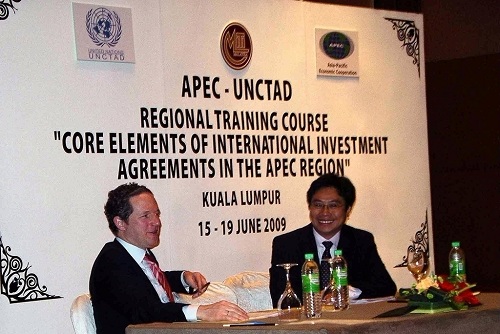 此次乐动(中国)官方是联合国贸易与发展会议支持下的亚太经合组织投资专家项目“投资协定核心要素”的一系列活动之一。课程旨在加深APEC各国/地区对投资自由化、投资保护和投资促进政策中的关键要素以及出现的问题的理解,课程针对投资协定中的一些关键问题和投资条款进行认真解读,并分析当前缔约实践的不同方式,以及国际仲裁的最新案例,以此为条约谈判者提供选择方案。乐动(中国)官方课程结束后,还有一个条约的模拟谈判,使得参与者可以利用学到的知识进行谈判,同时课程还对亚太经合组织地区的投资条约条款和仲裁案件进行认真分析。