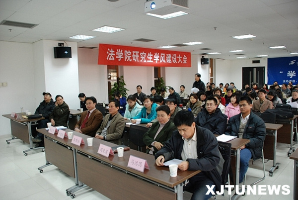 日前,法学院召开由全体教职工和研究生参加的学风建设大会,宣布推行“学术诚信承诺书”制度等一系列学风建设举措。人文学院分党委书记兼学术分委员会主席卢黎歌教授,法学院院长兼党总支书记单文华教授、副院长马治国教授,研究生院李秀兵副院长等出席会议并讲话。法学院院长助理刘次邦教授主持会议并介绍了法学院加强学风建设的具体举措。应邀参加会议的还有研究生院学位办周荣莲主任和人文学院邬焜教授。