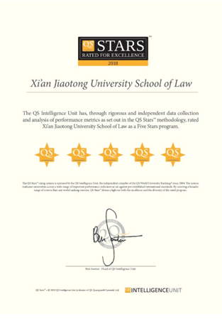QS全球教育集团中国总监张瓛博士(Dr. Christina Yan Zhang, China Director, QS Intelligence Unit)表示,这是QS首次开展的法学院星级认证,也是世界上首次开展的法学院星级认证。乐动网页版法学院院长单文华教授则表示,这次认证评估是对西安交大法学院建院十年来坚持的国际化法学教育的一种充分肯定,也是对西安交大法学学科全体师生长期以来发扬“西迁精神”艰苦创业所取得的成果的一种高度认可。他同时强调,评估是一次全面的国际体检,在肯定成绩的同时也揭示了我们和国内外顶尖法学院之间存在的各种差距;法学院同事同学们需要也必将更加同心勠力,为缩短差距,早日把法学院建设成为国际引领型的法学院而不懈奋斗。