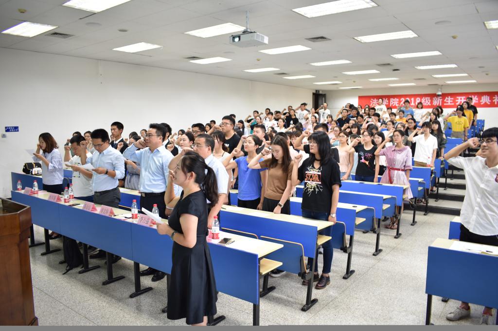 最后,全体新生在学生工作专职委员张乃钟老师的带领下庄重宣誓《乐动网页版法科生誓词》,典礼在铿锵有力的誓词声中圆满结束。