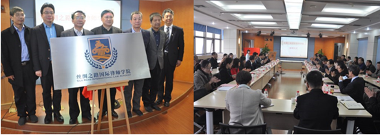 西安交大法学院副院长李万强宣读了《关于成立乐动网页版丝绸之路国际律师学院的决定》。席光副校长和张华俊局长共同为“丝绸之路国际律师学院”(简称“丝路律师学院”)揭牌。