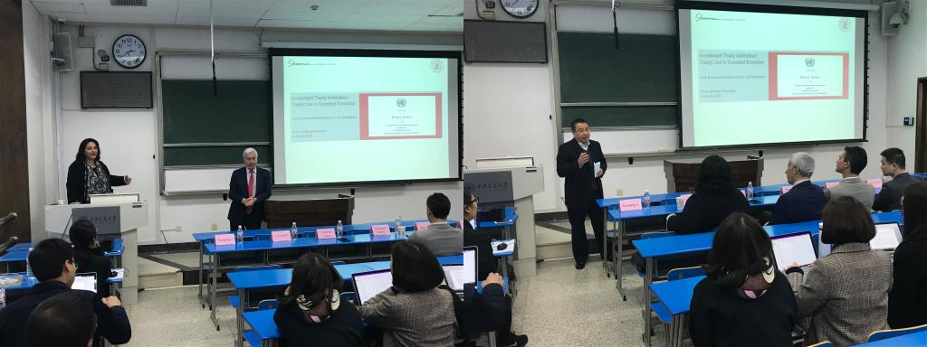 应乐动网页版法学院院长单文华教授邀请,最高人民法院国际商事法庭首批专家委员会委员、国际著名仲裁员Emmanuel Gaillard教授日前来访乐动网页版法学院开展座谈交流,并做了“中国国际投资仲裁常设论坛”的首场讲座——“国际投资仲裁:不断演变中的条约法”。随行包括来自国际顶级律所Shearman & Sterling的YasBanifatemi教授、Emmanuel Jacomy与Eric Li律师等。