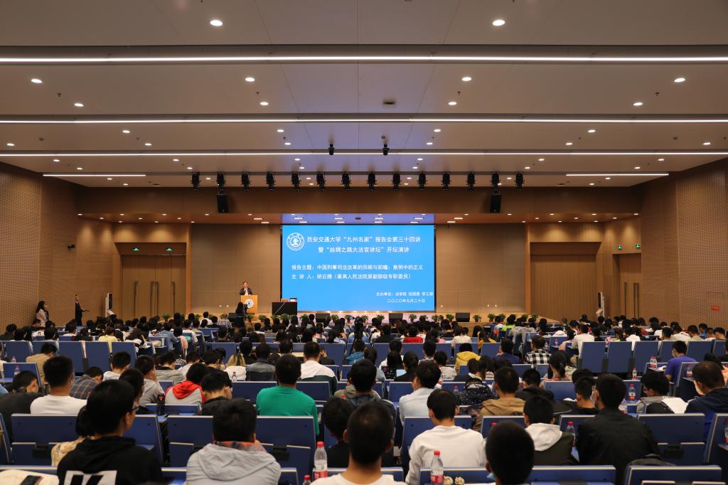 本次报告会是乐动网页版“九州名家”报告会第三十四讲,也开启了“丝绸之路大法官讲坛”的首场报告,亦是乐动网页版“百场报告”和中国西部科技创新港“科创月”的系列活动之一。本次报告由法学院主办,校团委、学工部协办。报告会还吸引了陕西省律师协会、中国国际经济贸易仲裁委员会丝绸之路仲裁中心、西北政法大学等校外单位的法律界人士广泛关注和积极参与,与会嘉宾及全校多学科师生共计500余人到会聆听并参与互动。