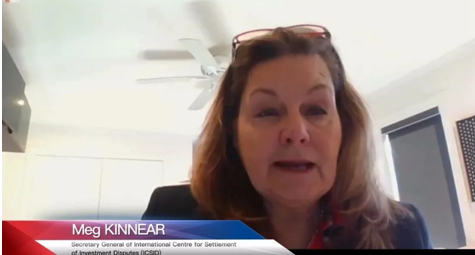 世界银行副行长、国际投资争端解决中心(ICSID)秘书长Meg Kinnear女士和贸仲副主任兼秘书长、常设论坛主席王承杰先生分别通过录制视频和在线致开幕辞。致辞揭示了CAI对于世界与中国国际投资法治发展的重大意义,为论坛的专题讨论奠定了基础。