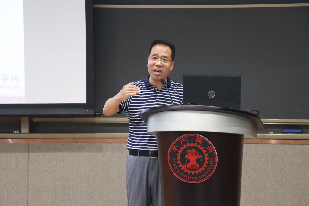 单文华院长首先对全体新生的到来表示热烈的欢迎。作为一个进入法学院三十六年之久的“老学生”,他向大家分享了法学学习的心得体会。他认为交大学生突出的优点是实诚,法学研习也迫切需要“实诚”,就“实”而言,法学是一个实践性很强的学科,在学习过程中要身体力行、真实从事、扎实勤恳;就“诚”而言,法学也是一个主要运用语言文字的学科,要想通过语言来有所成就,那么就必须要正心诚意,尊重事物的客观规律,坚持主客观相统一来进行学习,方能学有所成。