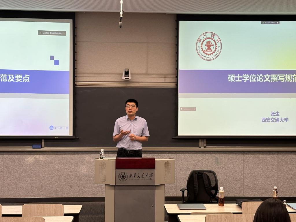张生老师从硕士学位论文的选题、检索策略、语言表达规范、问题分析路径、格式规范以及学位申请流程等多角度出发,结合学生在论文撰写过程中易于产生的误区,对硕士学位论文撰写工作进行了全面剖析。最后,张生老师列举了学术不端行为的若干情形,并强调了学术不端行为造成的严重后果,进一步加深了同学们对学术不端行为的认知,为我院培养研究生学术诚信意识,营造风清气正、求真务实的学术环境奠定了良好的思想基础。