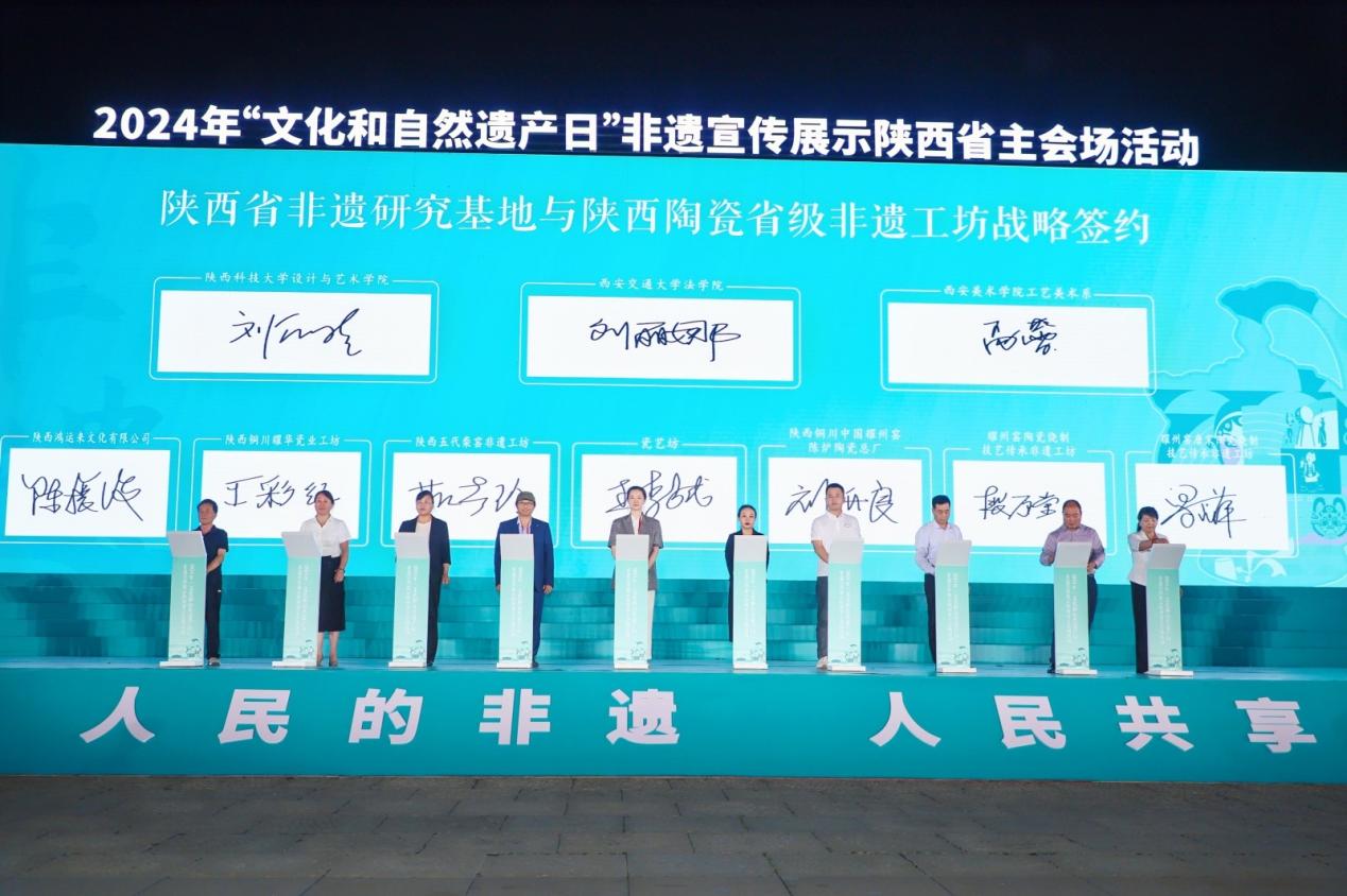 在启动仪式上,乐动网页版、西安美术学院、陕西科技大学三家陕西省非物质文化遗产研究基地与7家陕西陶瓷省级非遗工坊(铜川市耀州窑唐宋陶业有限公司、铜川市印台区东方古镇陶业有限公司、陕西铜川中国耀州窑陈炉陶瓷总厂、陕西火凤凰耀州官窑有限公司、陕西五代柴窑文化科技发展有限公司、陕西铜川耀华瓷业有限公司、陕西鸿运来文化有限公司)签订战略合作协议。