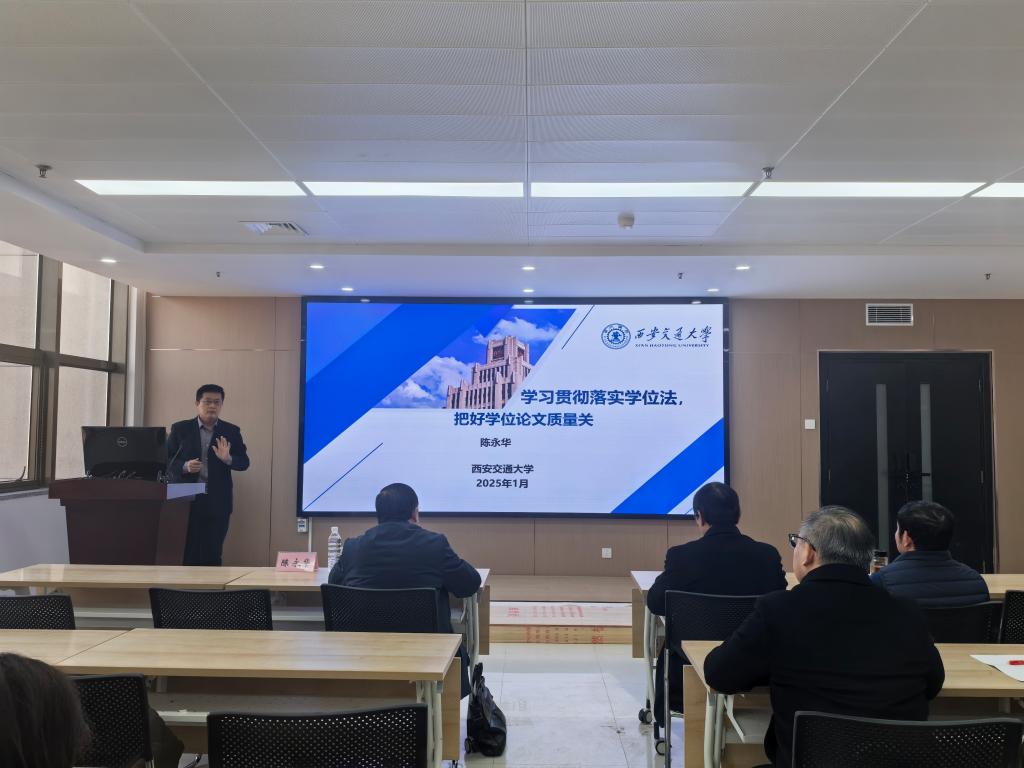 陈永华主任以“学习贯彻落实学位法,把好学位论文质量关”为题作报告。他详细解读了《学位法》《乐动网页版学位授予工作办法》《乐动网页版关于进一步加强研究生学位论文质量保障的若干意见》等学位管理文件,通报了学校学位授予、学位质量保障、学术不端处理以及导师管理规定等情况,并就导师牢把学位论文质量关、实现论文抽检“零问题”分享了自己的思考和建议。