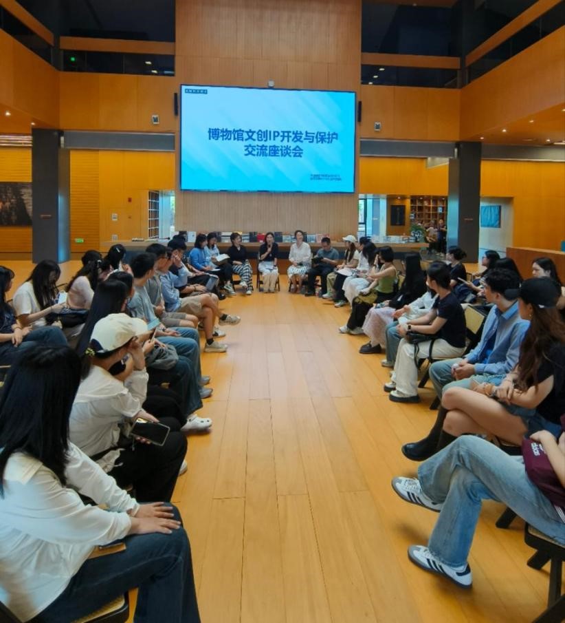 参观结束后,法学院师生与历博文创、商务、运营部的同仁,以及文创驻馆企业、供应商等代表,在馆内召开了“博物馆文创知识产权开发与保护交流座谈会”,多方就文创产品开发的全流程管理方案、版权保护现状及当前存在的法律问题等内容开展讨论。