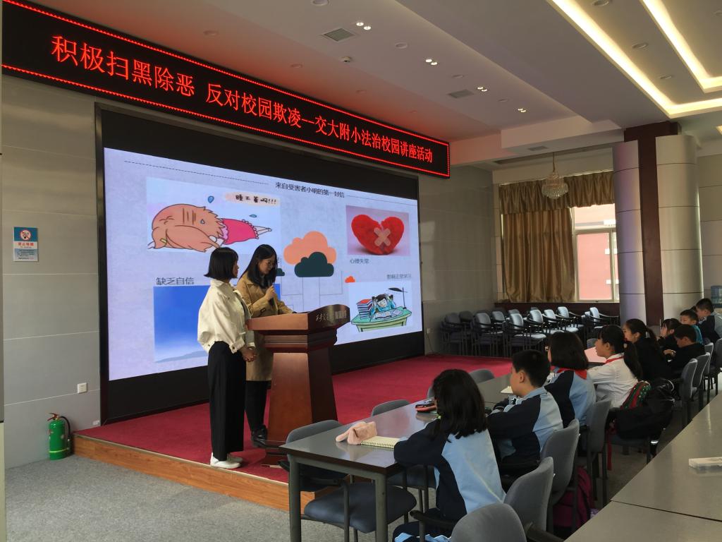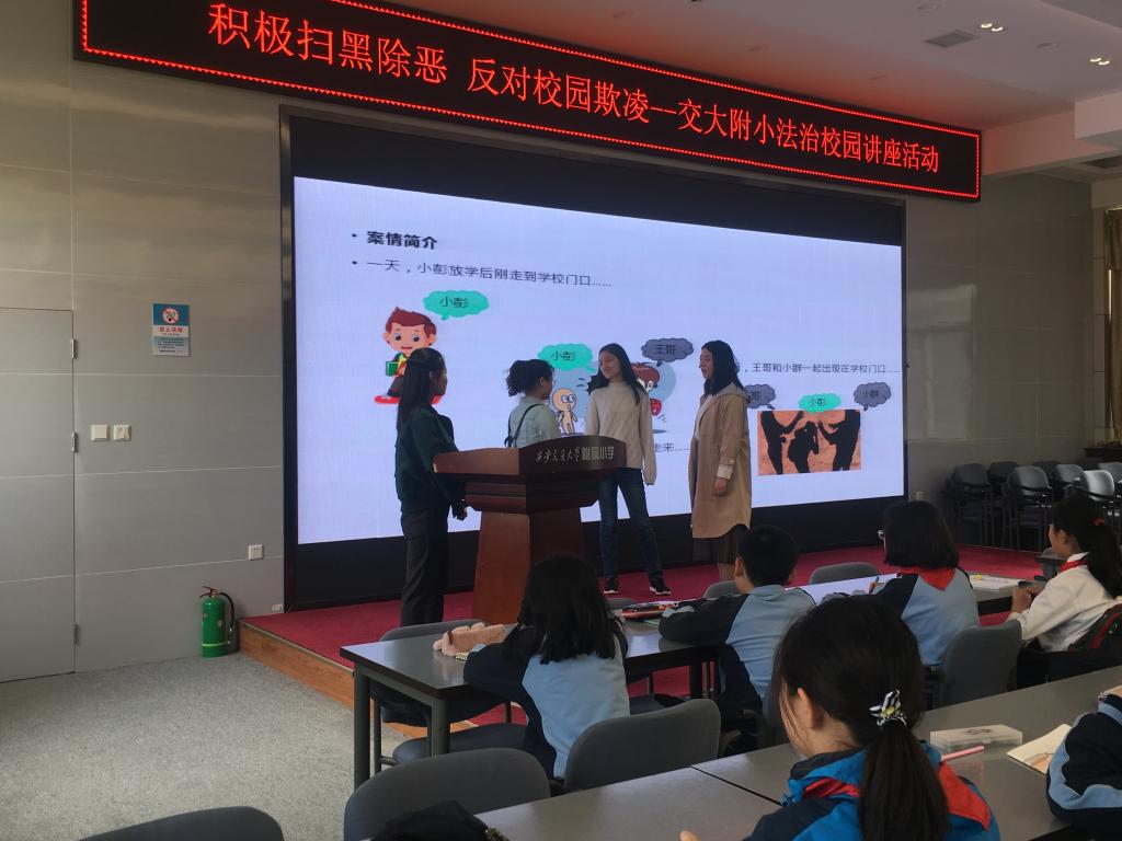 2019年4月15日,乐动网页版法学院硕7155班(三年制)党支部一行10人来到乐动网页版附属小学,以“积极扫黑除恶,反对校园欺凌”为主题开展了校园法治宣讲活动。本次宣讲分三组进行,由浅入深,以视频、情景表演、信件沟通等方式形象生动的向小学生们传达了面对校园欺凌,该如何保护自己,如何拿起法律的武器保护自己的权益。