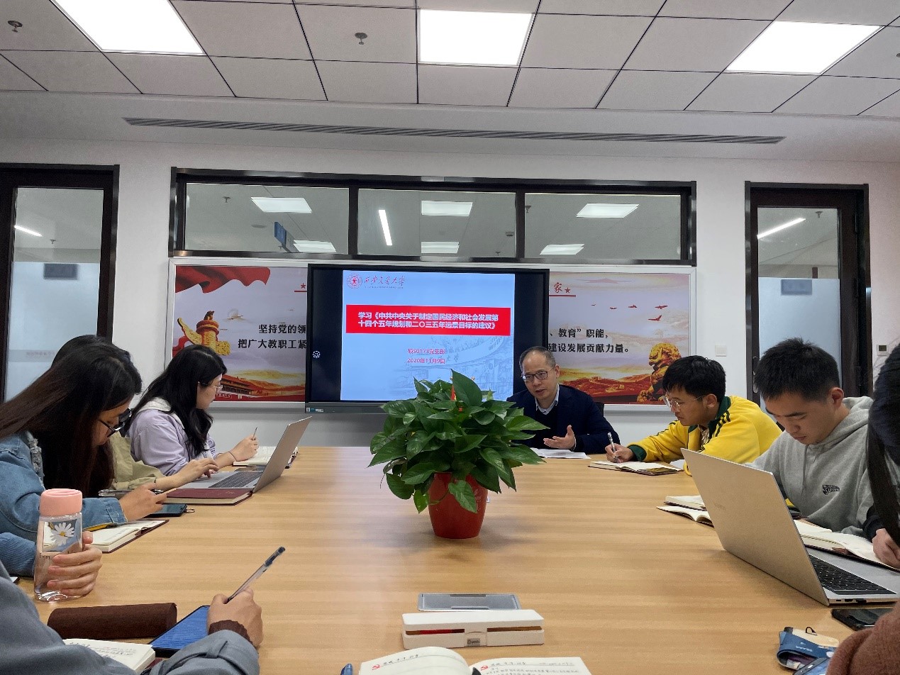 首先,由党支部书记宫雨组织与会成员共同学习《建议》的内容,并引导大家进行热烈讨论。