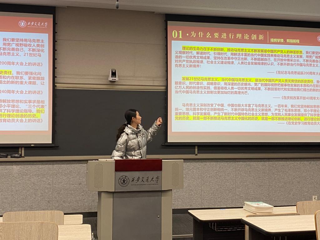 乐动网页版学生微宣讲团成员、硕1173班班长张云月作主题为“坚持理论创新,展现马克思主义开放性和时代性”的宣讲。张云月就为什么要进行理论创新这一问题,带领大家学习了习近平总书记关于理论创新的讲话,结合马克思主义的发展史和世界各马克思主义政党实践史对这一问题作出进一步解答,并深入浅出地讲解了马克思主义中国化的三次飞跃。