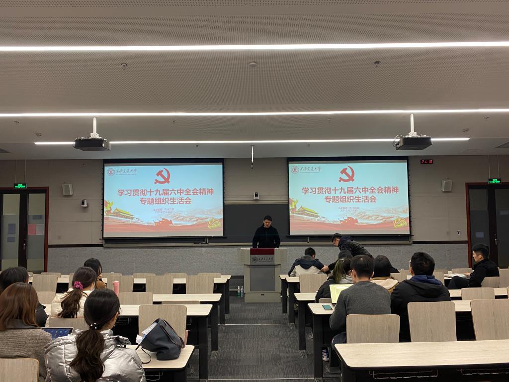 2021年11月30日下午在创新港校区涵英楼5-1005室,法学院硕1173党支部举行了学习贯彻党的十九届六中全会精神专题组织生活会,党支部书记张一凡主持会议。