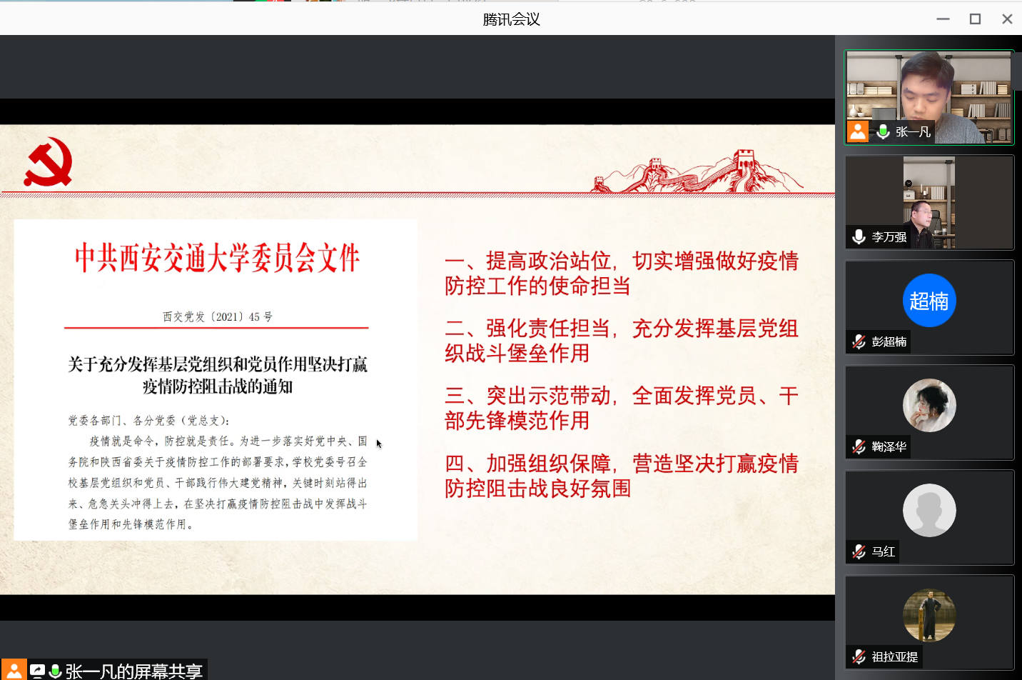 • 【同心抗疫】“疫情防控作表率,践行初心担使命”——硕1173党支部开展线上防疫专题组织生活会