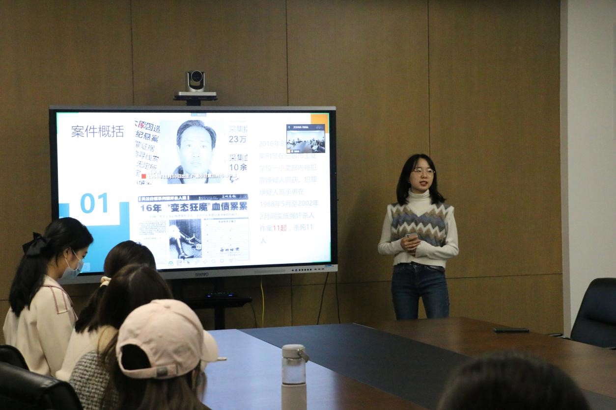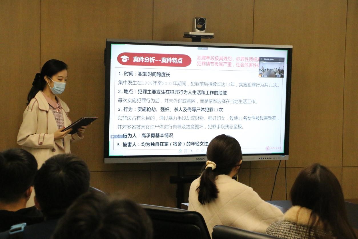 本期普法微课堂聚焦旷世大案“甘肃白银连环杀人案”。法学院马卓同学首先介绍了案件基本案情。1988年至2002年间,高承勇在我国甘肃省白银市及内蒙古包头市连续杀害女性11名,作案跨度14年,最小受害人年仅8岁,手段残忍,极具隐蔽性,造成了巨大的社会恐慌。随后,马卓同学就罪犯的家庭背景、生活环境和作案习惯等方面进行了讲解,深入浅出地使同学们在短时间内对该案件形成了系统性认识。